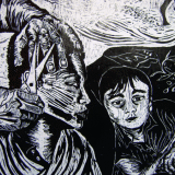 All of my work is drawing-based and I work mainly on a large scale using lino and woodcut, and I also make small books. I live in Bradford, West Yorkshire; through my work I try to reflect and document the city. However, I am interested in the wider concerns of people around the world and how we are all connected. The subject of my work is everyday narrative stories; modern stories told through a traditional medium.
