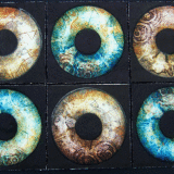 My work is mainly collagraph printmaking; I love the challenge of this experimental technique, which produces a rich textured surface and layers of colour in the prints. I am currently developing sculptural techniques using plaster.