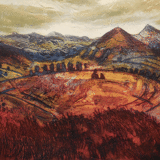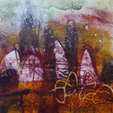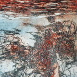 My recent prints are primarily multi-coloured collagraphs, a process that has been chosen for its tactile surface quality, potential for vigorous mark making and ability to create expressive colour combinations. I mainly produce prints in small editions of between 5 and 20. Each print I make is unique depending on the colours and wiping techniques used and often the differences are quite dramatic. I embrace this as a positive and exciting aspect of the collagraph process and exploit its potential within my series of works. Recently I have been experimenting with mixed media printmaking to create expressive impressions of local landscapes using oil wax mediums, gilding flakes, gilding wax, collage and free motion stitch.